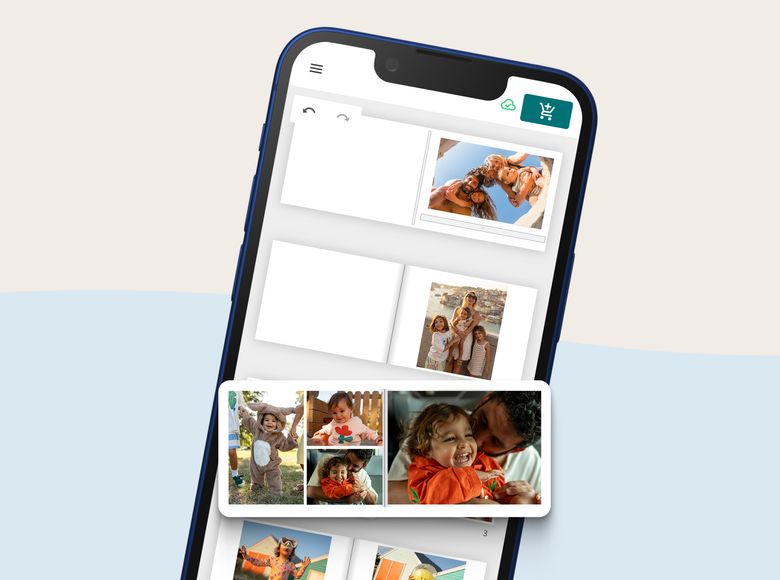 Mergulhe diretamente na criação. Carregue uma série de fotos ou um álbum inteiro e a nossa ferramenta irá organizá-las num bonito esquema de álbum - pronto para ser personalizado por si.