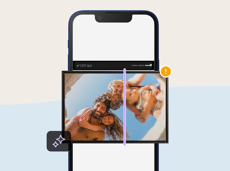 Dê um toque de brilho às suas fotos de baixa resolução. A nossa ferramenta de IA aumenta a qualidade e reduz a pixelização, fazendo com que a sua arte mural tenha o melhor resultado possível na impressão.
