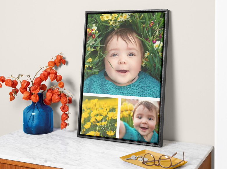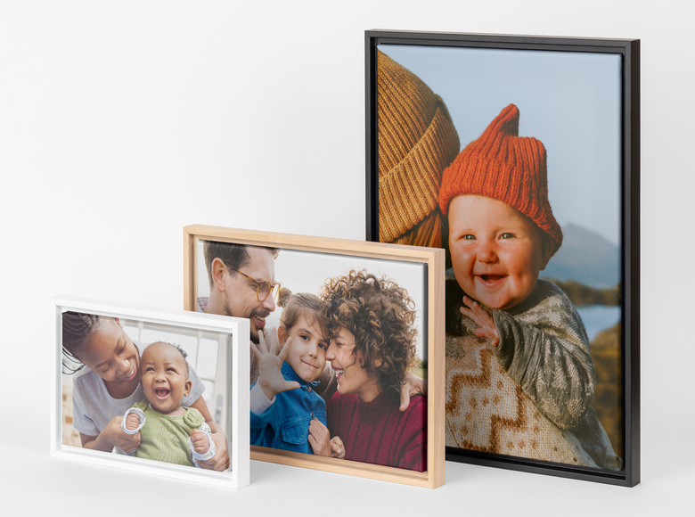 É fácil criar uma tela com moldura. Basta selecionar a sua fotografia, escolher o tamanho e a cor da moldura da tela e nós tratamos do resto. As suas telas de fotografias com moldura chegam prontas a pendurar – sem necessidade de montagem.